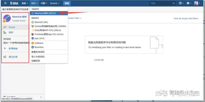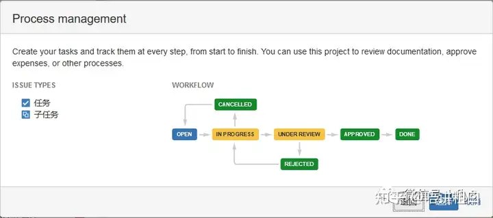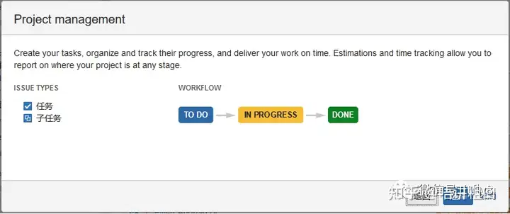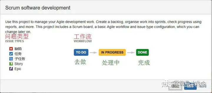 说明:JIRA中可以建立项目的类型(上例是建立Boards时系统自动建立的软件项目,是默认的第一个项目类型)