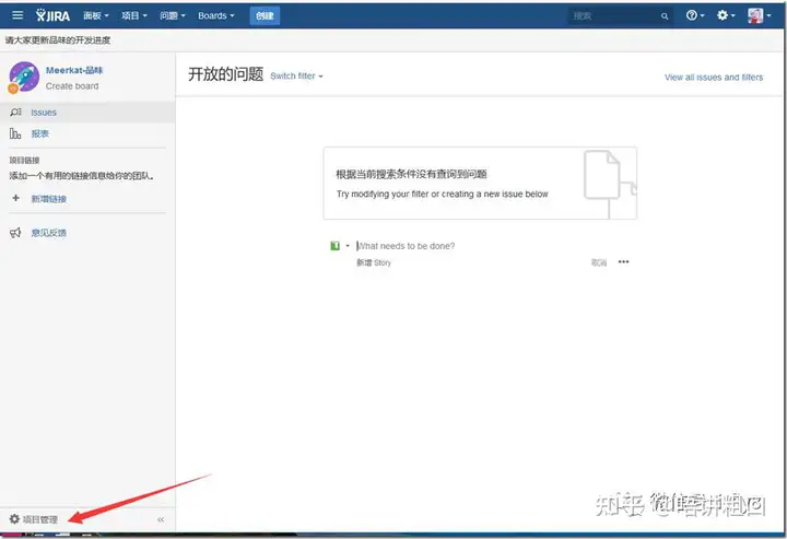 1、基本设置完成后,返回可以看到功能已经全部具备,下面开始添加Story、Task了