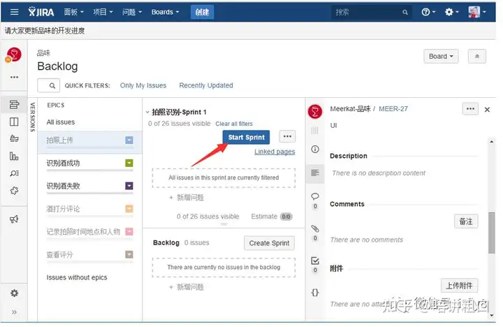 有了活动Sprint,Active Sprint项目才能有内容。