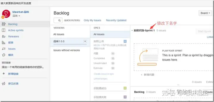 3、建立第一个Sprint,并重命名,方便识别