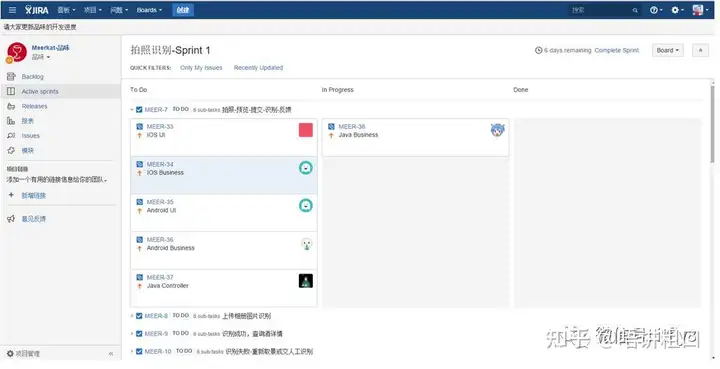 二、Active Sprints(查看进行中的Sprint的进展情况:To Do/In Progress/Done)