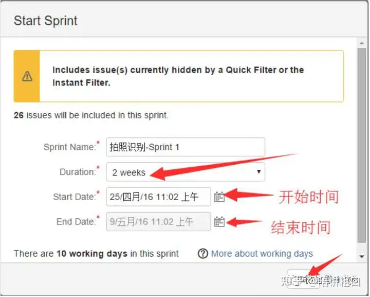 设置第一个Sprint的开始及结束时间